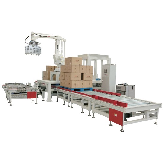 機器人碼垛機適應于潤滑油、食用油、涂料、日化、食品等生產企業對紙箱、袋裝、罐裝、盒裝、瓶裝等各種形狀的成品進行碼垛。結構非常簡單,容易保養及維修;主要構成零件少、配件少,所以維護費用很低;機械手碼垛機可以設置在狹窄的空間,即可有效的使用,全部控制可在控制柜屏幕上操作即可,操作非常簡單。可全天候作業,配備機械手可替代不少工人的工作量,由此每年能節省幾十萬的人力資源成本,達到減員增效。變換抓手可實現多種產品的混線生產。機器人有效負載50-450kg;適用范圍:瓦楞紙箱、塑膠箱、桶狀包裝物、袋狀包裝物。